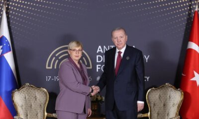 President Recep Tayyip Erdoğan had a meeting with Slovenian President Natasa Pirc Musar, who was in Türkiye for the 5th Antalya Diplomatic Forum. The leaders discussed Turkey-Slovenia bilateral relations and regional and global developments.