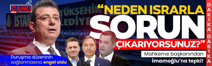 The presiding judge announced that the defendants who were not detained would be heard first. İmamoğlu’s lawyer requested, “Mr. Ekrem wants to make a greeting speech.” The President rejected this request, saying, “There is no such procedure.” When İmamoğlu came to the podium, the presiding judge warned, “Ekrem İmamoğlu, you cannot get up and come to the podium and speak as you wish.” For İmamoğlu, who continued to speak despite the warning, it was noted in the minutes that “he came to the podium and continued to speak even though he was not given the right to speak.” The President also said, “Take your seat.”